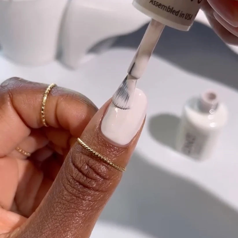 (Gris blanquecino): es una pequeña botella de esmalte color arcilla, un gran paso para una manicura destacada en un tono pastel neutro.